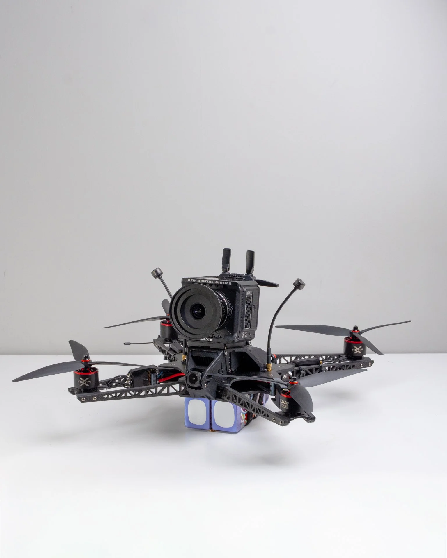 I specialise in Heavy Lift FPV drones that are designed to carry high end cinema cameras such as the Sony FX6, Freefly Ember or RED Komodo. These drones have complete customisation of the payload in which we can rig peripheral equipment such as wireless focus and monitoring directly to the drone